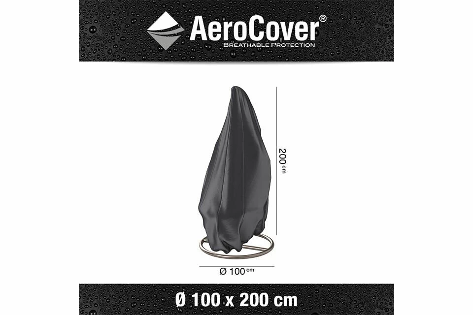 Hangstoelhoes van AeroCover. Ademende tuinmeubelhoes voor hangstoel op standaard ø100×200 cm. AeroCovers zijn ademend, waterbestendig, reduceren condensvorming en gaan schimmelvorming tegen. De stof heeft een hoge kleurechtheid dankzij de door en door geverfde vezels. Een AeroCover hoes verlengt de levensduur van uw tuinmeubelen. AeroCovers zijn vervaardigd van sterk en lichtgewicht ripstop polyester. Ze zijn makkelijk hanteerbaar en nemen weinig ruimte in wanneer niet in gebruik. De afdekhoes is voorzien van rijgkoord met 2 stoppers voor een goede pasvorm. Inclusief handige opbergtas. AeroCover stoffen zijn 100% waterdicht, de naden zijn, net als elke ander hoes, spatwaterdicht.