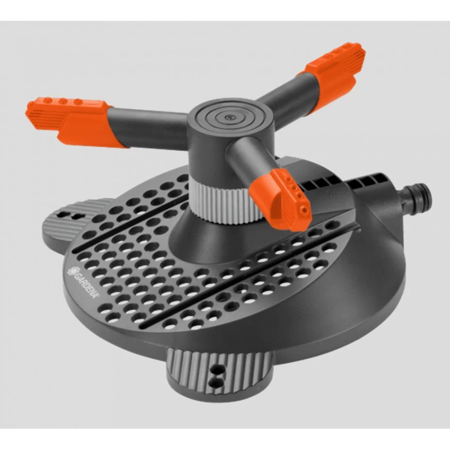 De Gardena classic cirkelsproeier Samba is een praktische sproeier voor kleine tot middelgrote oppervlakken. U kunt gebieden van maximaal 250 m² besproeien met een sproeidiameter van 3 m tot maximaal 18 m. De sproeier heeft draaiende, zeer precieze spuitmonden, die zorgen voor een gelijkmatige verdeling van het water, zonder plassen. De stevige basis garandeert een stabiele werking en mobiel gebruik. Met praktisch uitneembaar vuilfilter. Besproeien kan zo gemakkelijk zijn.