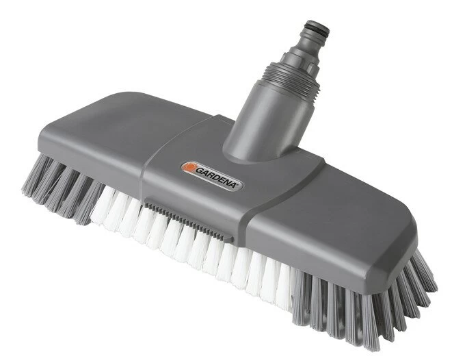 De Comfort schrobber kan op het waterleidingnet en op alle Original GARDENA Cleansystem Waterstelen worden aangesloten. De GARDENA Comfort schrobber kan zelfs hardnekkig vuil verwijderen. Deze accessoire voor het Original GARDENA Cleansystem is 27 cm breed en heeft borstelharen met verschillende lengten, voor een intensieve reiniging van vooral ongelijkmatige vloeroppervlakken, naden en uitsparingen. De speciale platte spuitmond en de schraaprand zorgen dat het reinigen nog gemakkelijker gaat. De Comfort Schuurborstel is zeer geschikt voor het grondig reinigen van robuuste vloeroppervlakken, zoals terrassen, paden en oprijpaden. Gemakkelijk en effectief reinigen – met de GARDENA Comfort schrobber.