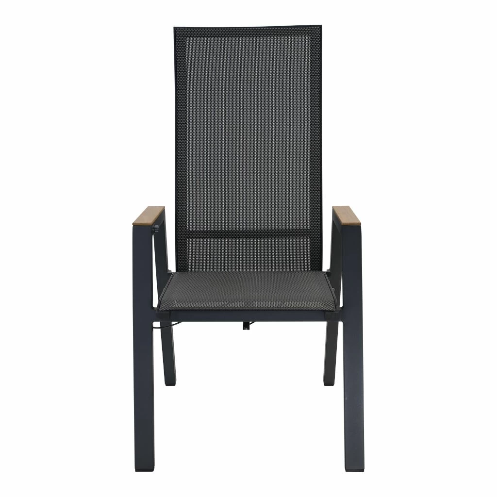 - Aluminium frame met textileen zitting, teak houten armleuningen