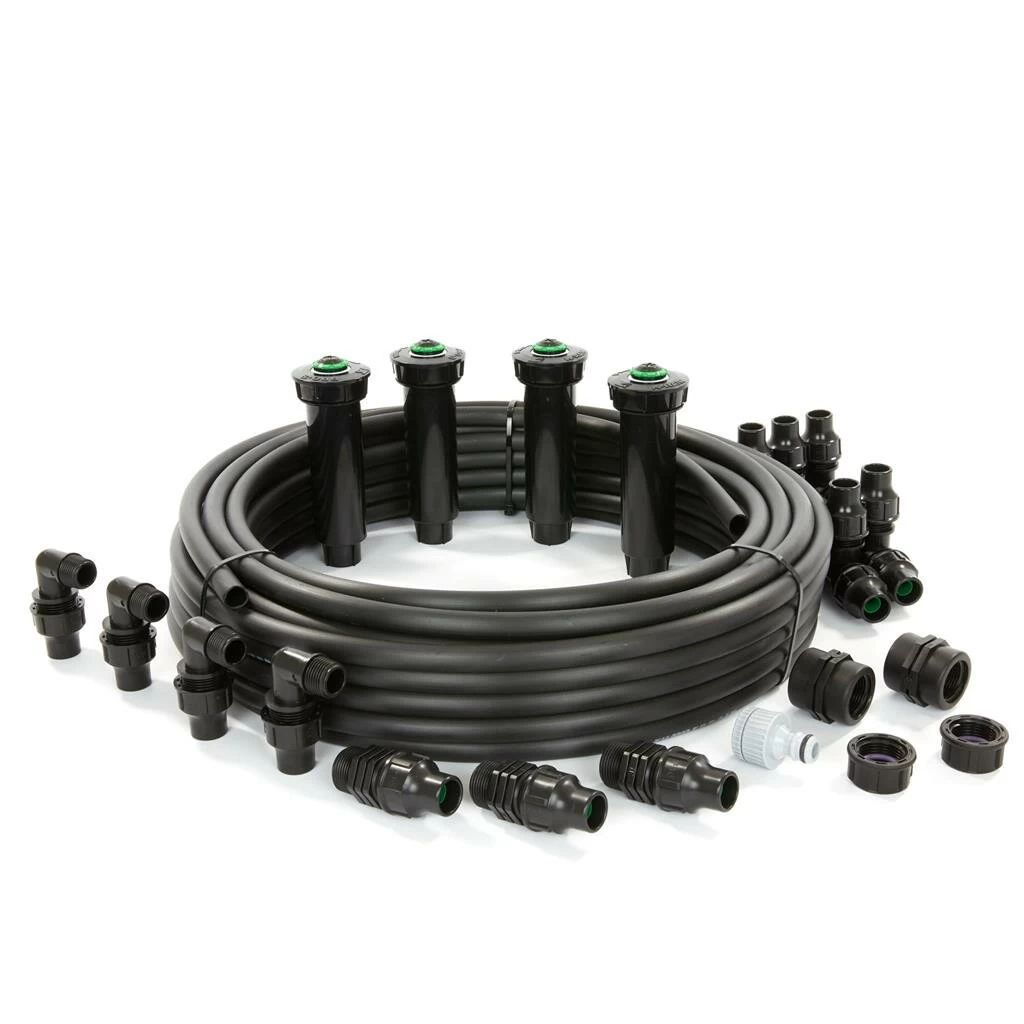 Deze automatische sproeiset geeft jouw gazon vanzelf water. Jij hebt ondertussen alle tijd om zorgeloos van je tuin te genieten. De draaibare pop-up sproeiers zijn verzonken in het gazon. Je ziet ze niet, zijn grasmaaier-proof en voor het sproeien komen ze automatisch boven de grond. De sproeiers zijn instelbaar, zodat je terras droog blijft. Een traditionele zwenksproeier is niet meer nodig, dus je bespaart veel water en tijd. De aanleg is heel eenvoudig, kennis of kracht heb je er niet voor nodig.