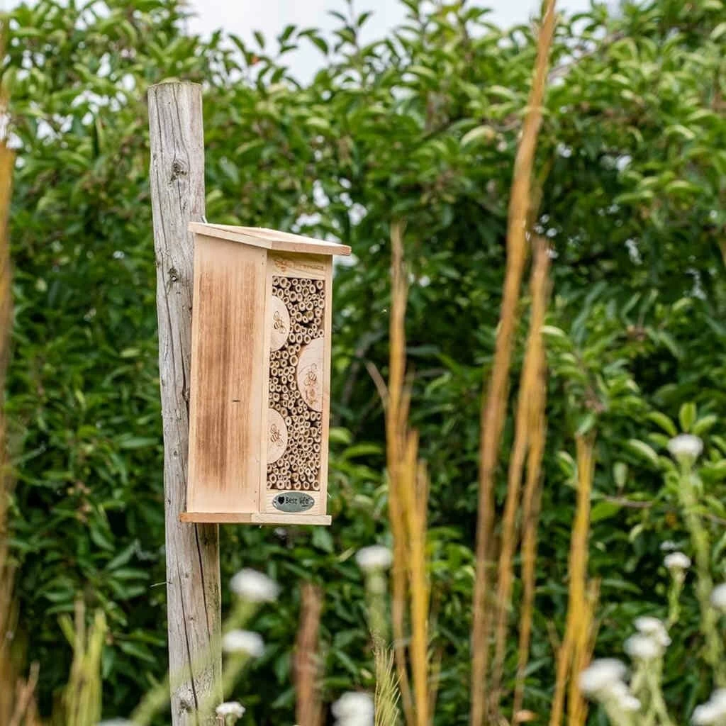 Dit insectenhuis biedt een ideale schuilplaats voor allerlei bijzonder nuttige insecten, diverse soorten solitaire bijen, lieveheersbeestjes, groene gaasvliegen en oorwormen om bij nat weer in weg te kruipen. Deze insecten helpen u in de strijd tegen bijvoorbeeld bladluizen. Op een mooie warme zomerdag zie je overal insecten vliegen. Op koude en natte dagen houden ze zich echter schuil. Deze kast biedt een ideale schuilplaats voor insecten om bij nat weer in weg te kruipen.